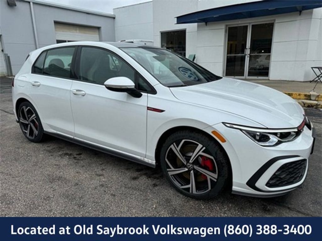 White Pearl 2024 Volkswagen Golf GTI 2.0T SE FWD 7-Speed DSG Automatic with Tiptronic 2.0L TSI DOHC Located at Old Saybrook Volkswagen, Golf GTI 2.0T SE, 4D Hatchback, 2.0L TSI DOHC, 7-Speed DSG Automatic with Tiptronic, 4-Wheel Disc Brakes, Brake assist, Electronic Stability Control, Emergency communication system: VW Car-Net Safe & Secure 5-year, Exterior Parking Camera Rear, Forward collision: FCW w/Autonomous Emergency Braking mitigation, harman/kardon® Speakers, Heated front seats, Heated Front Top Sport Seats, Heated steering wheel, Illuminated entry, Lane Departure Warning System, Navigation System, Power moonroof: Panoramic, Power passenger seat, Radio: MIB3 Discover Pro w/10" Touchscreen Navi, Wheels: 18" 2-Tone Machined Alloy.
