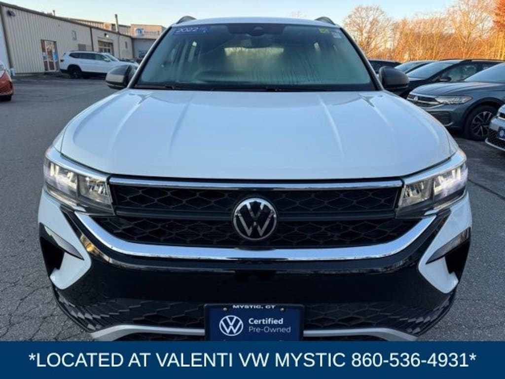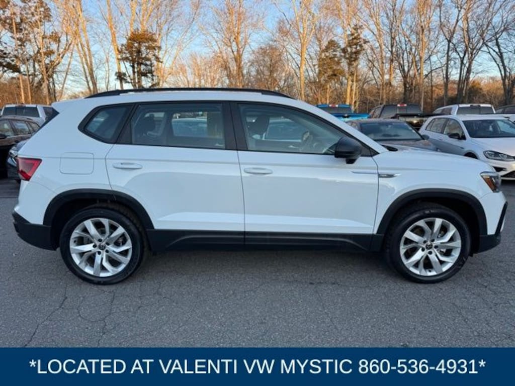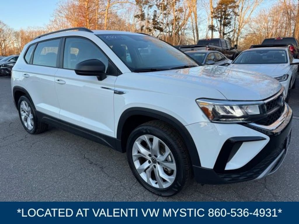 VW CERTIFIED 2 Year/24,000 Mile Warranty, Located at our Mystic VW location. CARFAX One-Owner. Clean CARFAX. Pure White 2023 Volkswagen Taos 1.5T S AWD 7-Speed DSG Automatic with Tiptronic 1.5L I4 Turbocharged DOHC 16V LEV3-SULEV30 158hp